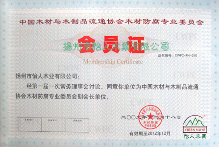 慶祝公司獲得中國木材與木制品流通協(xié)會木材防腐專業(yè)委員會的“會員證”!