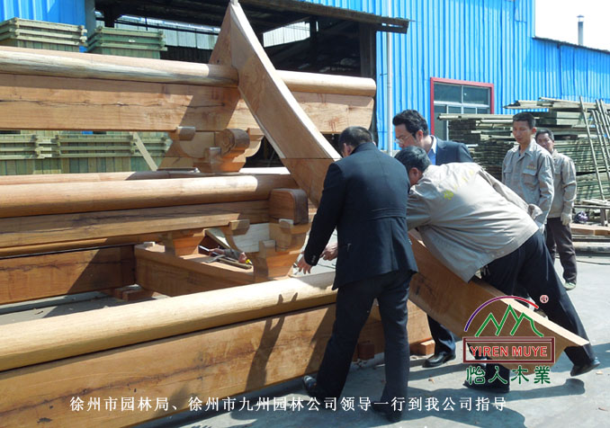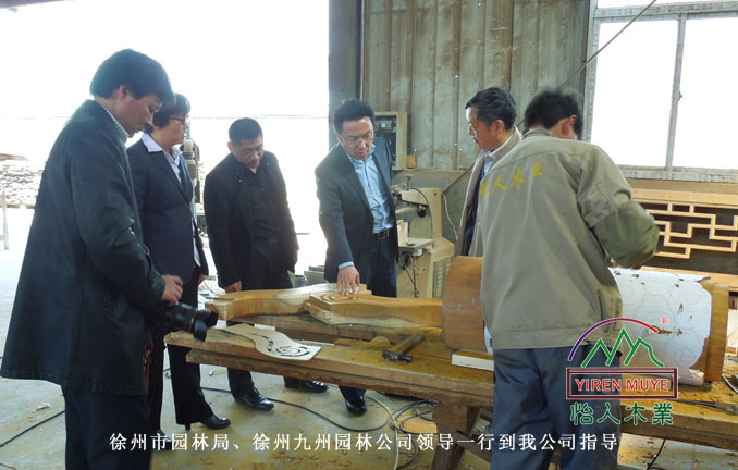 2014年3月16日,徐州市園林局、徐州市九州生態(tài)園林綠化工程有限公司領(lǐng)導(dǎo)一行在我公司總經(jīng)理姚有濤先生陪同下對我公司承建的徐州市泉山森林公園敞園改造工程入口木門樓工程制作過程和加工進(jìn)度進(jìn)行了現(xiàn)場視察和工作指導(dǎo)。 公司總經(jīng)理姚有濤先生表示,徐州市泉山森林公園敞園改造工程入口木門樓工程項(xiàng)目是揚(yáng)州市怡人木有限公司2014年的重點(diǎn)項(xiàng)目,全體怡人木業(yè)同仁都將不遺余力、奮發(fā)而為,使徐州市泉山森林公園敞園改造工程入口木門樓工程項(xiàng)目在徐州市一鳴驚人,脫穎而出,成為行業(yè)的全國樣板工程。 在場領(lǐng)導(dǎo)紛紛表示看好怡人木業(yè)的生產(chǎn)加工能力和技術(shù)能力,對徐州市泉山森林公園敞園改造工程入口木門樓工程項(xiàng)目的制作工藝和加工進(jìn)度給予了充分肯定,并對我公司總經(jīng)理姚有濤先生給予了很高的評價,為徐州的園林綠化發(fā)展做出了卓越的貢獻(xiàn)表示贊賞。
