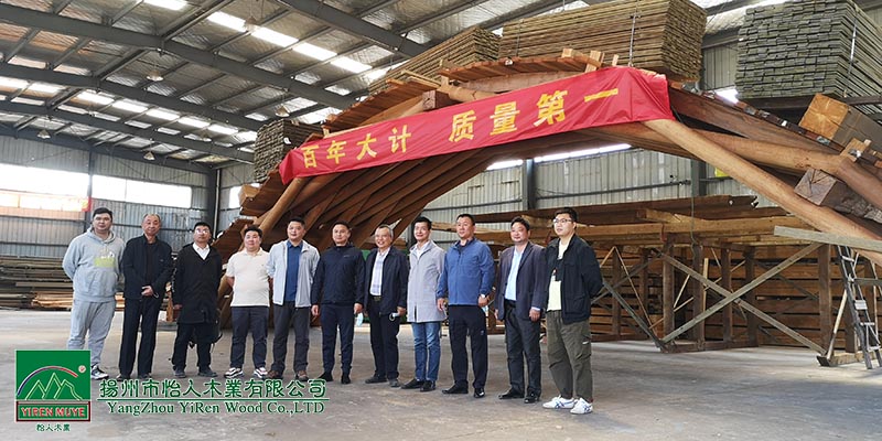 “紅橋飛跨水當(dāng)中,一字欄桿九曲紅。”詩(shī)句中的紅橋源于明末清初詩(shī)人王士禎二十首《冶春絕句》其中流傳最廣的一首。 2022年百年老字號(hào)揚(yáng)州冶春茶社對(duì)茶社進(jìn)行全面的改造提升,為了復(fù)原當(dāng)年冶春紅橋盛景,經(jīng)過(guò)多方考察篩選,最終選擇由我公司負(fù)責(zé)建造紅橋。紅橋的木拱結(jié)構(gòu)采用北宋年間《清明上河圖》中那座橫跨汴水的貫?zāi)竟昂鐦蛳嗤慕Y(jié)構(gòu),全木榫連接,橋長(zhǎng)16米寬3.7米,選用印尼進(jìn)口菠蘿格材質(zhì),經(jīng)烘干后真空加壓防腐處理工藝,大大延長(zhǎng)了木材在室外使用年限,正常使用和維護(hù)下至少保證100年不腐爛。木拱橋制作過(guò)程中,冶春領(lǐng)導(dǎo)和工程相關(guān)負(fù)責(zé)人員十分關(guān)心木橋工藝和質(zhì)量,多次詢(xún)問(wèn)并到工廠關(guān)心制作過(guò)程。